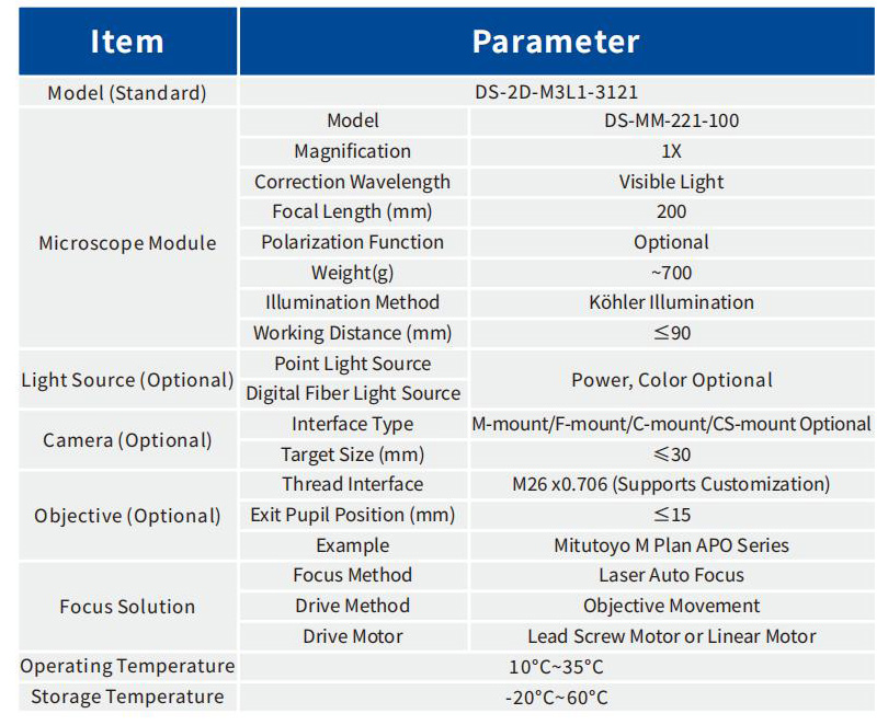 ● Uses coaxial Köhler illumination with high uniformity (≥0.9).