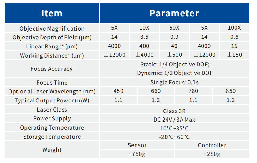 ● Sub-micron focus accuracy,matching different objectives to achieve 1/2~1/4 Depth of Field focus.